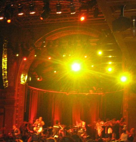 The venue itself deserves a few words. Berns is a large, labyrinthine complex with restaurants, bars, a big gilded room with a stage, a score of smaller rooms suitable for conferences and even it's own 60-room hotel. Built in the 1800s, Berns is located in the upper class part of town. The main hall where the concert was held is absolutely gorgeous. The walls are intricately carved and gilded, there are several huge crystal chandeliers running the length of the room. There are also balconies surrounding the central floor and along the balcony walls are paintings of people who probably were famous at the time the building was made, but I have no clue who they are. Really an incredibly beautiful setting for the concert.