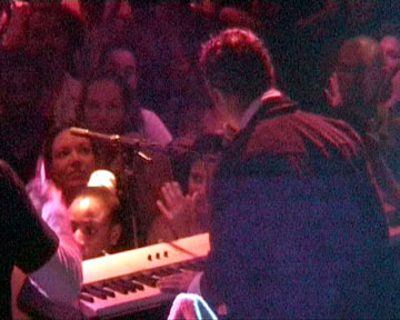 Although Maykel was playing with the idea of a ballad intro to Años during the soundcheck, he didn't put it into practice at this concert. And then came the now famous Recoge y vete in Paris moment. The fans went crazy with the first notes of the song and cheered wildly when they reached the tumbao and the "como en mi Cuba nadie baila el son" coro. I don't know how many digital cameras and telephones I saw raised to film this song. It is without a doubt a megahit that will be around for years to come. And of course there's the part where Maykel had them repeat the "Colombia y su vallenato, eso si que suena bien" section so that the audience could sing. And finally when the song reached its false ending the audience shouted out "¿Eh, se acabó?" without any prompting and in fact continued shouting for quite a while.