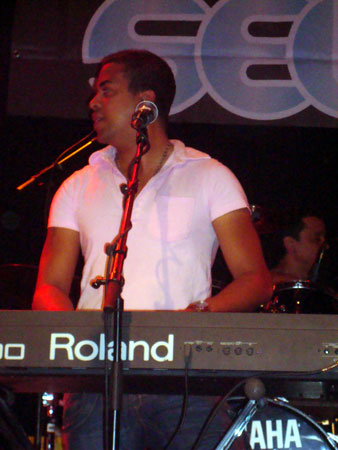 The most intense song of the evening had to be Agua, written by Samuel and performed by Mayito. Mayito's delivery was pura candela, but that wasn't all. Part way into the song Cucurucho invited Oldrich Gonzalez, also ex-Charanga Forever, to take over piano for a while. Then violinist Santiago Jiménez took Irving's violin and played an incredible, scorching solo. Shortly thereafter Hector Oviedo of Yoruba Andabo came on stage to dance a little columbia. When Hector finished, Mayito invited up one Sueca and one Cubana to shake their thang. Click on the picture below to see bits and pieces of what I'm talking about.