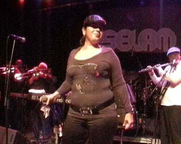 Mayito performed the classic Van Van anthem Soy todo followed by Robertón and La buena. Then came the first estreno of the evening, Me mantengo. Composed by Cucurucho and sung by Lele, the demo has already become popular around the world as we wait for the release of the new CD, Arrasando. I know you would probably all like to see video of the new song, but you're out of luck. I couldn't stop myself from dancing during this song and the camera was swinging around just a little too much. Sorry, but you try standing still with your arms extended straight over your head for two hours and see what happens.