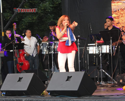 "He's dead, Jim." In the very first Star Trek television series, it was said that you could always tell which members of the away team were going to die during the episode because they always wore red shirts. For whatever reason, at the vast majority of Chicago's music festivals, whether public or private, at least one band experiences an attack by a hostile Romulan sound system at the worst possible moment. This festival's casualty was Hector Silveira's band, and I noticed that there were red congas on stage, so now I'm going to start keeping track of that little detail at future festivals. This is an excellent band, I heard it as recently as a few weeks before this event, and when the brass section is coming through the board correctly, it can face off with almost any dance band in North America. Alas, probably due to the absence of a full sound check, the sound that reached the audience included brief moments best described as Los Metales del Error rather than the original NG horns that these guys could challenge when everything is working properly. Those of you who were in the audience, give Hector another shot when he comes out to play again. Incidentally, his bassist, Ian Stewart, has been contributing to the Escuelas section of TIMBA.com. If you are a bassist yourself, check it out. Chicago's La Dama de la Salsa, Sureya, followed. Sureya's core repertoire is out of the Celia era as well, and she performs it with conviction, but fortunately she and Xiomara Laugart covered different material in their sets. Sureya also knows how to win over a crowd, and it would have been interesting to hear her and Xiomara Laugart together in a song or two.