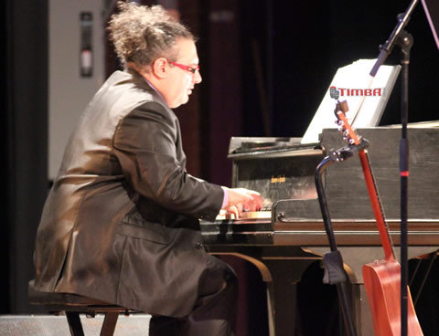 Louisville's own Joanna Garcia, who played with Orquesta Anacaona in Cuba and now plays with the local group Cosa Seria Latinband, sat in (or should we say stood in?) with the group on percussion during the latter part of the show.