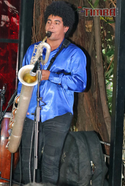 ENGLISH: Today, the final day of the festival I attended some presentations at the Pabellon Cuba during the day and the Casa de Cultura de Plaza in the evening. Unfortunately, due to some technical issues, I only have photos for publication from the Pabellon save for one photo from Casa de la Cultura de Plaza. The Cuarteto de Saxofones de Santiago played again, Influencia, a very interesting but somewhat obscure young jazz group from Santiago, and pianist Alejandro Moroño performed in La Pergola. Canadian saxophonist Doug Martin also performed there. In the Central Stage area of the Pabellon, Kelvis Ochoa, very popular in several popular music genres, gave a concert.
