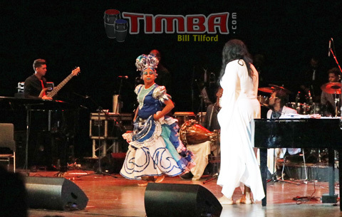 ENGLISH: Once again, I opted for Teatro Mella in the evening, with presentations by Rodrigo García y Ceda el Paso, Dayme Arocena, and a special collaboration by Manolito Simonet and Ray Chew (the latter of the United States) called Two Beats One Soul. Although Ceda el Paso, led by young pianist and Amadeo Roldan alum Rodrigo García, was the opening act, from a Jazz perspective it was the most interesting presentation of the evening. One of their songs, Te estoy llamando, is a brilliant Jazz composition based upon cell phone ringtones. This group, which has not yet made a recording, has great promise. None of that is intended to detract from the presentations that followed: Dayme Arocena was captivating as always, with some explosive Rumba elements in her performance, and Two Beats One Soul was very well presented (how could it NOT be so with Manolito coordinating the Cuban elements?), although that last presentation was more of a popular music collaboration combining elements of both Cuba and North American popular music. There is a CD/DVD project behind 2 Beats One Soul, and it is available in the US. Likewise, Dayme has a new release, Cubafonía. I will be observing the progress of Ceda el Paso with great interest.