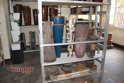 ENGLISH: Two of the most wonderful collections of instruments at the Museo Nacional de la Música are the antique pianos and the Fernando Ortíz Collection of percussion instruments. Since the museum building is undergoing an extensive renovation project, the photographs in this gallery were taken in storage areas rather than the normal exhibit halls, and they represent just a portion of the instruments in the collection. The crown jewel of the piano collection (see above) was used by Bola de Nieve, and it is kept in the recital hall.