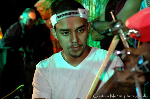 Azúcar Negra's excellent young trap drummer has just begun his second tour of duty with the group.