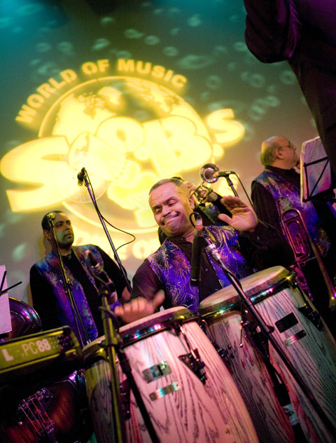 Larry Harlow is a living legend of Salsa music. He is one of the first artists to be signed by the Fania record label and has been involved in hundreds of recordings as a piano player, leader and producer and is credited with revolutionizing the salsa sound. He is affectionately called "El Judio Maravilloso" (the marvelous Jew). As a teenager he went to Cuba for a vacation, fell in Cuban music and enrolled in the University of Havana studying Cuban music for two years. One of Larry's current bands, the Latin Legends Band, played at SOBs in New York City on November 23, 2007, the Friday after Thanksgiving, to a packed house.