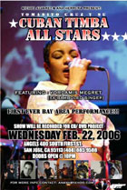 Thursday, January 19, 2006 - TWO SHOWS ADDED FOR THE CUBAN TIMBA ALLSTARS! - Click here for their new home page. This is really getting exciting. And this is a gira sin visas! No government interference. All the musicians are already living here, so this one is really going to happen. And if you're not in Northern California, there's still time to book a cheap flight to the most beautiful city in the USA.