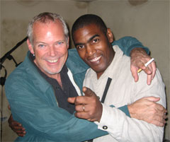 It was really an amazing experience to watch the complex elements of a timba show come together before my eyes. Every player in this group is so good that it all seemed effortless. Even in rehearsal, the intonation and phrasing of the horns and vocals was significantly better that the majority of recent live tapes from Havana. I was stupified by the professionalism of the horn section of Julio Díaz (Celia Cruz, Arturo Sandoval), Carlos Puig (Celia Cruz, Alain Pérez), Felipe Lamoglia (Gonzalo Rubalcaba), and Brailly Ramos (Manolín). Felipe and Brailly also contributed most of the arrangements. Lead vocalists Yordamis (Bamboleo, PG), "El Kid" (NG La Banda, Dany Lozada, Manolín, Paulito FG, Tiempo Libre) and Elain (Pachito Alonso) were also grinning from ear to ear as they took turns singing lead and perfecting their coro harmonies.