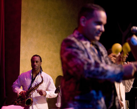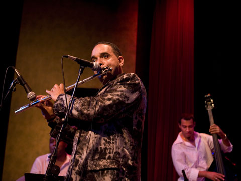 This is a band of master musicians. All these cats have impressive resumes and incredible chops. It was two evenings of great music mixing swinging Cuban salsa with jazz like solos, including Craig Handy, well known and fantastic jazz sax player from NYC area, Tito Carrillo jazz trumpet professor at University of Illinois near Chicago, Sean Billings who used to play with Celia Cruz's West Coast Band as well as with Jazz on the Latin Side (great latin jazz big band from LA), Coky García who played with Opus 13 in the 1990's and plays with Issac Delgado and others, Osmany Paredes playing timbaos in his sleep and some amazing solos (he's truly one of the great piano players on the scene today) who plays with many jazz groups in the NYC area as well as his own group, Alberto (based in Toronto) and Adonis (based in LA) singing great vocals who both have their own groups, El Nengue playing some strong and creative congas, Sawa Pérez holding down the bottom - he also plays with Chuchito Valdés and Chalo y Su Ache and many others and of course the imcomparable Orlando Maraca Valle one of the great flute players, composers and arrangers in the world today. Maraca will be playing at the Monterey Jazz Festival on September 19 and 20, 2008, with an all star jazz group doing some original music composed by Maraca.