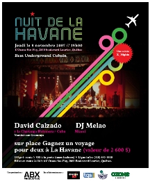 But that's not all! In November El Ciclón de La Habana will hit Canada. November 8 they will play at L'Ozone Ste-Foy, 2800 Boulevard Laurier, Québec. DJ Melao has all the details because he will be behind the turntable to provide the music!
